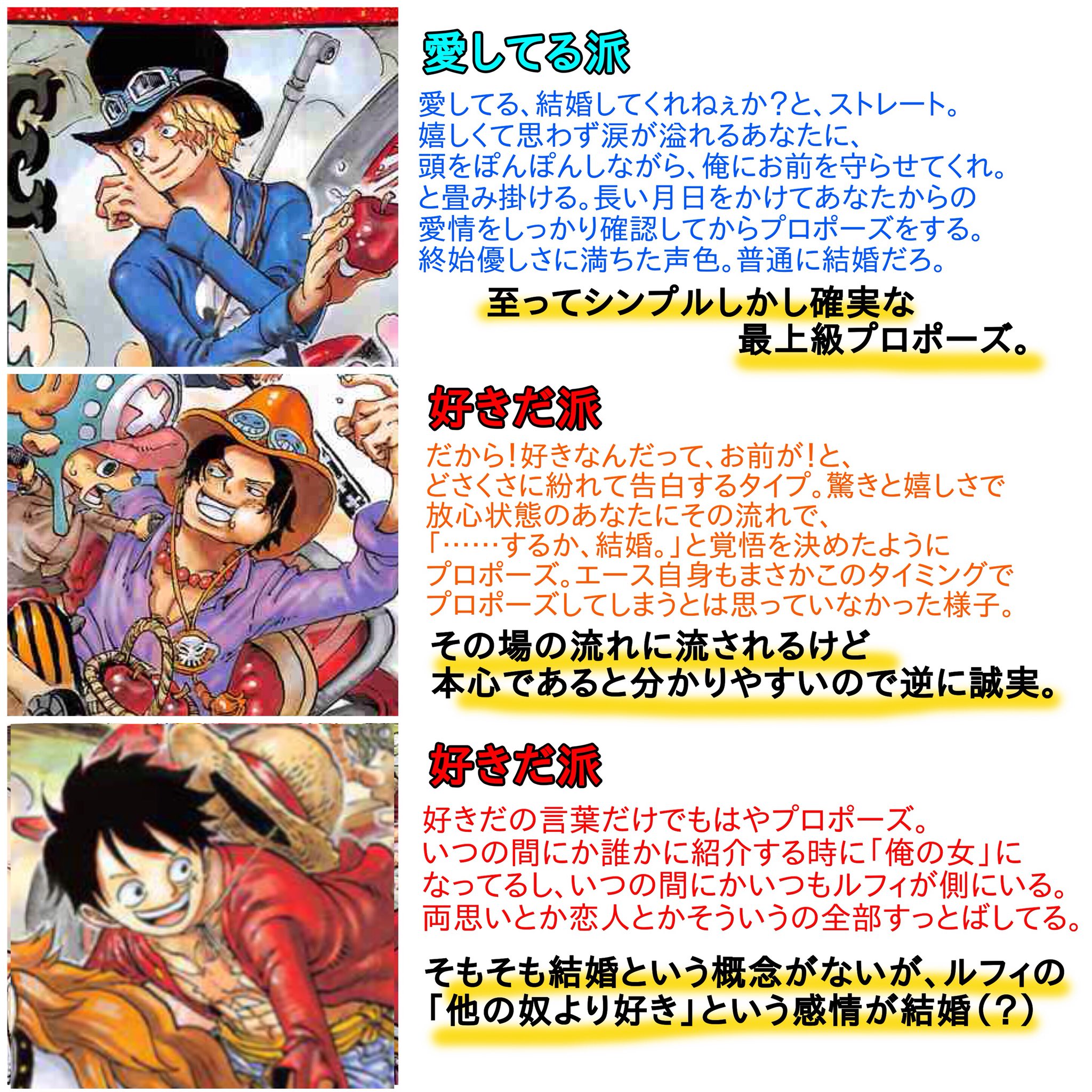 夢沼は深いとまと 夢女子がワンピ男子のプロポーズを妄想しました ついでにそのキャラがよく言うのは 愛してる 派か 好き 派かも考えてみました お題箱より