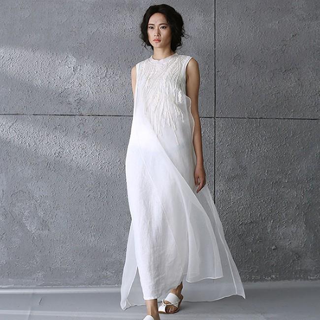 マキシワンピース ワンピース ロング ノースリーブ レディース 刺繍 サマードレス 白ワンピース アシンメトリー 結婚式 ドレス ロング 夏 オーガンディ シンプル Cl0384 ショップモモ 通販 Yahoo ショッピング